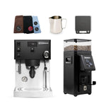 This bundle combines Rancilio’s commercial heritage with modern precision. The Silvia Pro X delivers dual boiler stability and advanced temperature control, while the Stile grinder ensures consistent grind quality for espresso.