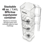 - 44 oz (1.25 L) Polycarbonate Container Ð Durable, stackable jar for efficient storage.